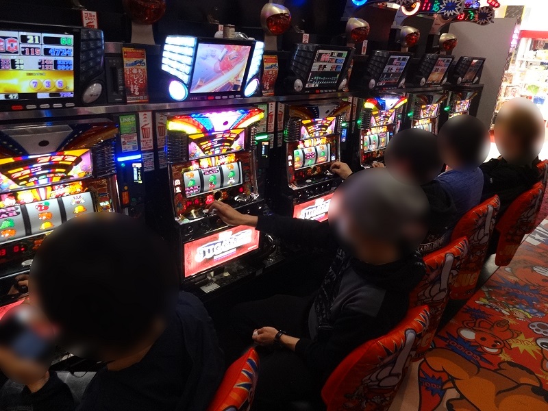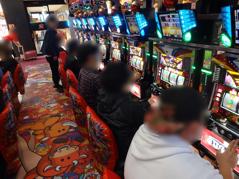 パチスロコーナーで盛り上がっていたのは新台とジャグラー。塊として入れてくるケースが多く、それを理解しているユーザーが多いのでお客さんも塊になって打っている光景は面白かった。