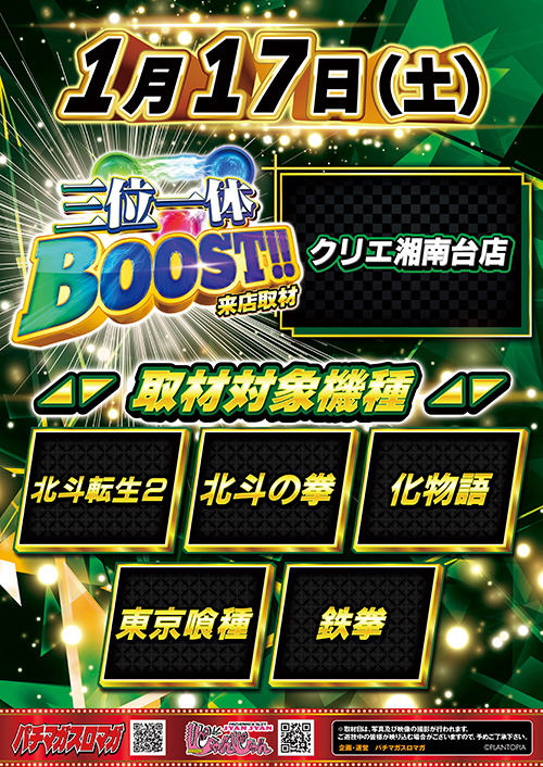 2026/1/17(土)【三位一体BOOST!!】取材対象機種(5機種)の中でも特に盛り上がっていたのは前回に続いて『北斗転生2』『鉄拳6』『化物語』に好調台続出!! 10,000ptオーバー台も複数出現!!