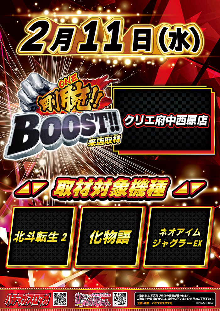 2026/2/11(水)【剛腕!BOOST!!】『化物語』に好調台がカタマリで出現!! また『攻殻機動隊』や『新鬼武者3』から10,000ptオーバー台が出現!!