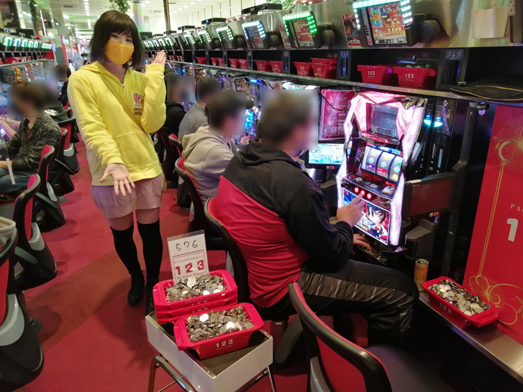取材当日は日曜日ということもあり、並びは100名以上! 47番目に入場できた私は、本命の萌え/アニメ系機種へまっしぐら!! しかし、傾向を掴んでいる人が多いのか、すでに埋まっている状況に正直焦りました。