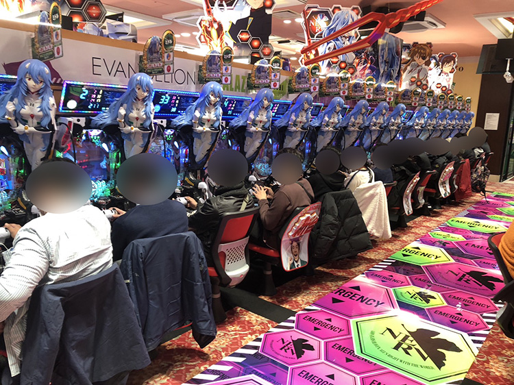 昼頃からは人気機種の「新世紀エヴァンゲリオン〜未来への咆哮〜」「スマートぱちんこソードアート・オンライン」も高稼働をキープし始めました。