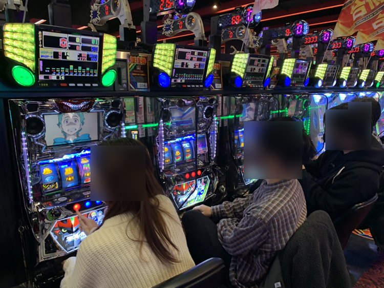 ちなみに、私が当初狙おうとしていた『パチスロコードギアス 反逆のルルーシュR2』や『パチスロ エウレカセブンAO』も好調そうでした。朝イチから私の実戦終了まで終始打ち続けていて、出玉的にも好調な様子。どちらも設定2以上が確定している台があったと教えていただくこともできたため、よかったのではないでしょうか。