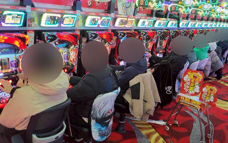 さて、気になる店内はというと朝イチ人気だった【東京喰種】【北斗の拳転生2】から粘れそうなお声あり。他にも【化物語】【新鬼3】からも内容がいいとのお声を聞くことが出来ました。この他にも確定こそ出ていないものの朝からずっと同じ台で粘っている方も複数いらっしゃいました。