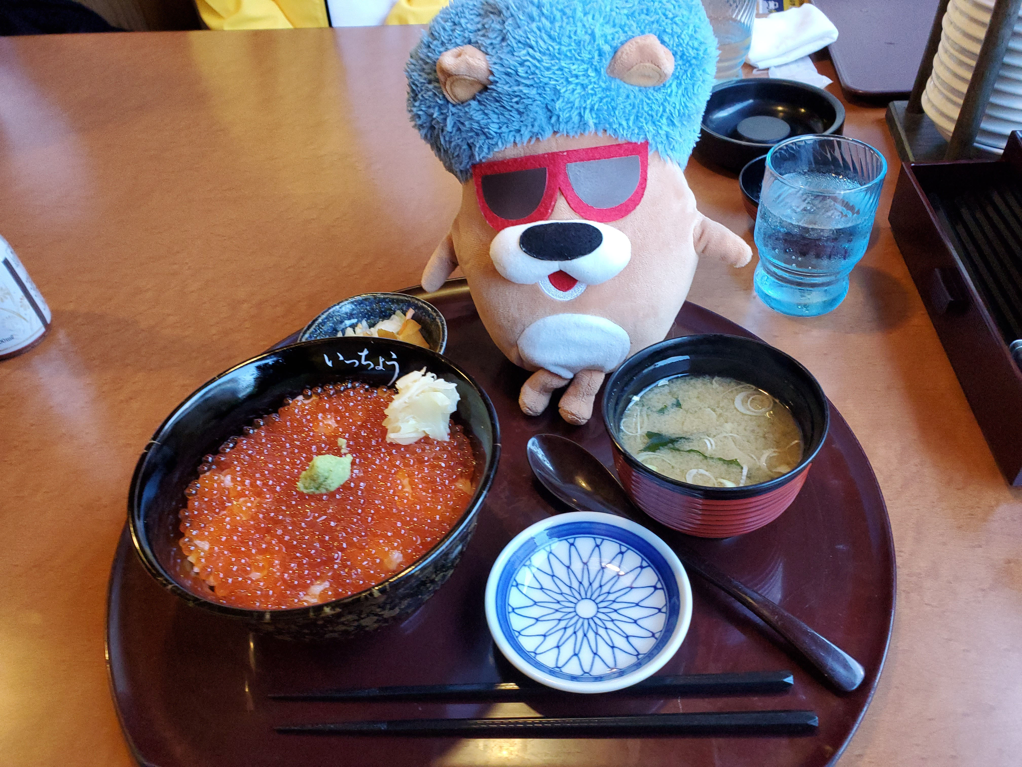 珠玉のいくら丼今回の食べ歩きツアーの食事は…「いくら丼」。ご飯の上にぎっしりといくらが敷き詰められており、食べ応え充分!! いくらにもしっかりと味がついていました。夢中で食べ進めつつ、ふと横のドラ美さんを見るとドラ美さんのパーカーにいくらの汁が飛んでいる!! ま、まずい。夢中になり過ぎた…と反省しドラ美さんにも謝罪。全然怒っておらず、むしろ笑って許してくれたドラ美さん。本当に優しい先輩です…!! 皆様もいくら丼に限らず、どんな美味しいものでも夢中になり過ぎには注意してくださいね!!