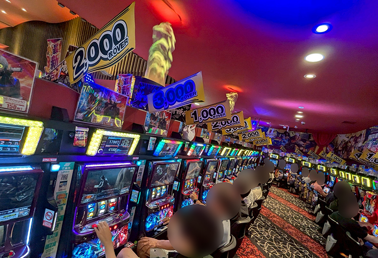 入店するとモンキー、北斗、東京喰種、モンハン、番長…満台。目に入る機種ほとんどが埋まっており、何とか設置台数が多いかぐや様に座ることができました。入場が落ち着いた頃、店内を回ってみたら3台以上設置のあるAT機はほぼ満台スタートとなっていました。