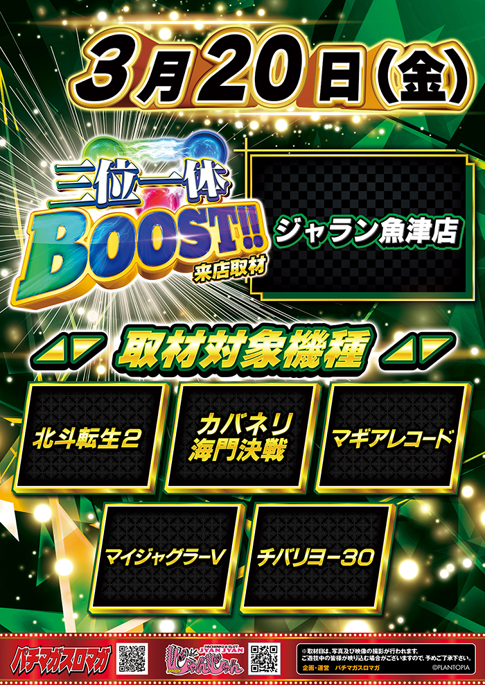 住所 富山県魚津市江口420-1 アクセス 魚津インターより車で5分。国道8号線沿い サイトURL http://49540.p-world.jp 営業時間 9:00〜23:00 入場ルール 08:35 参加券配布予定