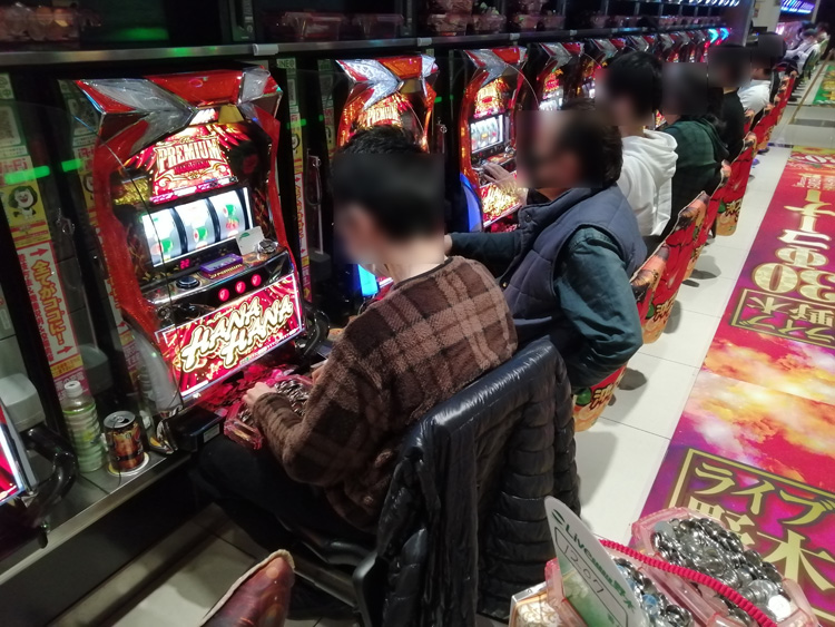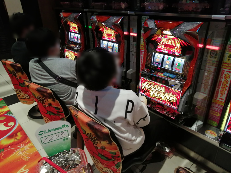 『ツインドラゴンハナハナ』には、3,000ptレベルが2台、2,000ptレベルが4台、1,000ptレベルが3台! 『プレミアムハナハナ』も4,000ptレベルと3,000ptレベルが1台、2,000ptが4台、1,000ptレベルが3台で出玉感は抜群!! フル稼働だったので、出玉状況も挙動も良かったのだと思います。