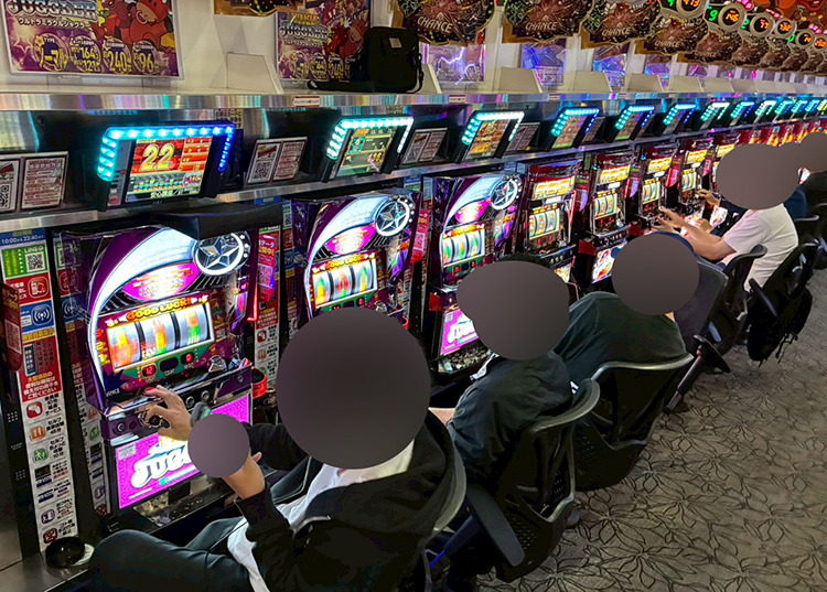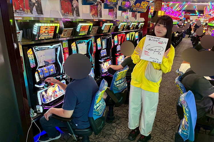 朝イチのホール状況はというと「L東京喰種」をはじめとした人気機種から「スマスロ 新鬼武者3」などの新台、さらに安定の「マイジャグラーV」などが瞬く間に埋まっていきました。