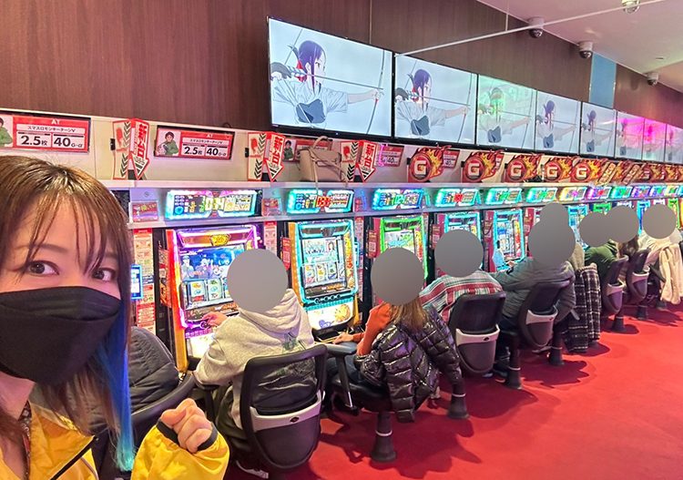 お昼前には空きなし機種だらけとなり、「ゴッドイーターリザレクション」からは5以上確定報告を複数台からいただき、さらに予想は6! と言う声も聞けました。この良い場所に混ざれた私も、まったくハマらずプラス2000枚と、気持ちよく打てました。