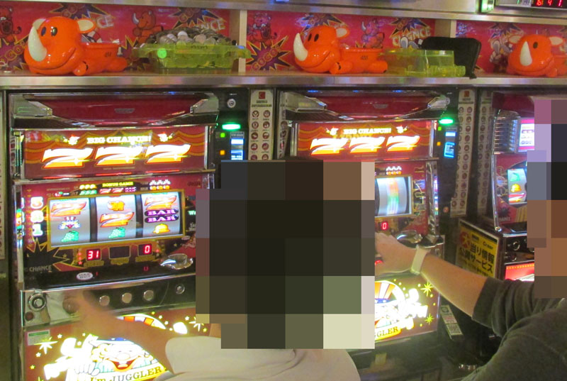 あいにくの天候となったこの日、ホール内で元気だったのが『アイジャグ』。取材時点で1000ptオーバーの台が複数確認できる状況! ランキングを見てもわかる通り好調の『ジャグラー』コーナーの中でも『アイジャグ』が特に好状況。最終的には設置10台中8台がプラス域となる好結果となりました。