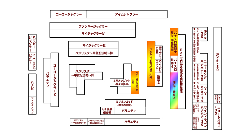 この日は『絆』『ハーデス』がまだ健在だったため何台か上位に食い込んでいるものの、やはり主役は『押忍!番長3』だと言って間違いないだろう。14,000pt超を筆頭にブン回しの注目シマとなっていた。