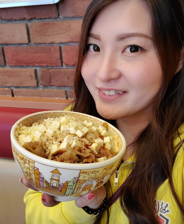 新メニュー・アラビアータ牛丼今回の食べ歩きツアーは、みんな大好きすき家の牛丼! 定番メニューもいいですが、今回は新メニューである「アラビアータ牛丼」に挑戦。濃厚なチーズと辛みのあるアラビアータのタレは相性抜群!! 並盛にしましたが大盛りでもよかったかな?と思えるほど美味しかったです。皆さまもぜひ食べてみてくださいね☆
