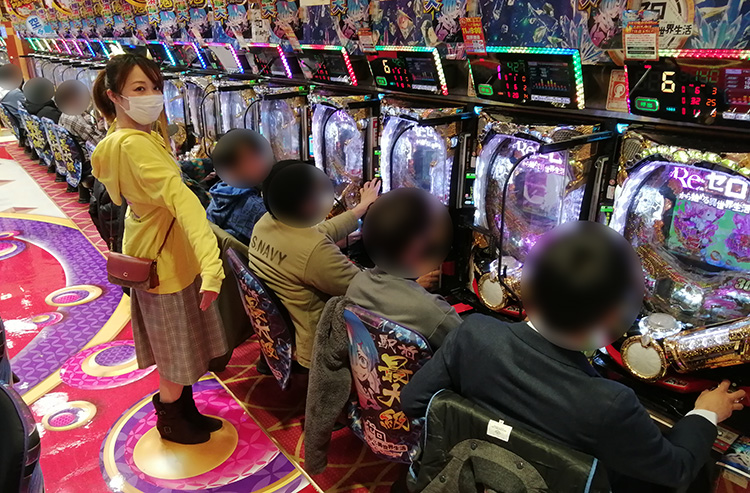 他には私がラスト1台に滑り込んだ「アズールレーン」。「エヴァ未来への咆哮」「リゼロ鬼がかり」「大海物語4スペシャル」などの台数多めなところも、お昼過ぎくらいにはしっかり人がついていました。