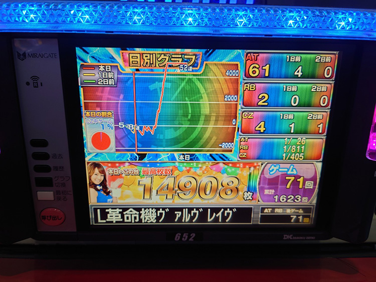 この日確保したのは「革命機ヴァルヴレイヴ」。前回音ちゃんが来た時に革命機ヴァルヴレイヴから設定4以上が出てたみたいなので今回もあるかも!? と期待しつつ着席。朝からかなり順調にラッシュに入れられて気付けばかなりの枚数を獲得…!! コンプリート目指して頑張るぞ☆