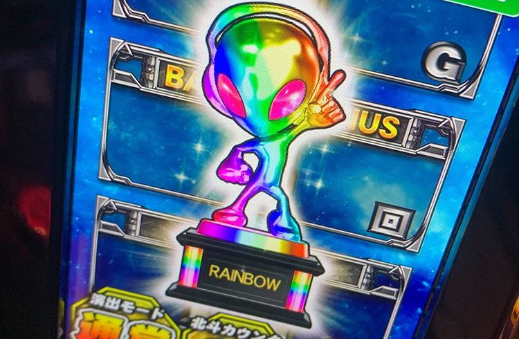 見事に設定6が確定となるレインボートロフィー出現! 最終的に差枚+402枚で終了と、大勝とまではいきませんでしたが最高設定台を打ち切る事が出来ました。