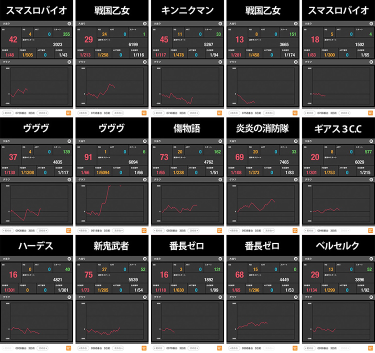 ところが実は前述した狙いはハズレ。今のところ毎回マルハンメガシティ柏さんに存在している“高設定を探す楽しみ”。今回はなんと、取材日が9月8日だったからか“末尾8と9がハーフで高設定”的な感じでした。