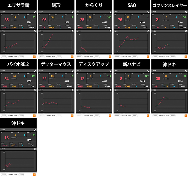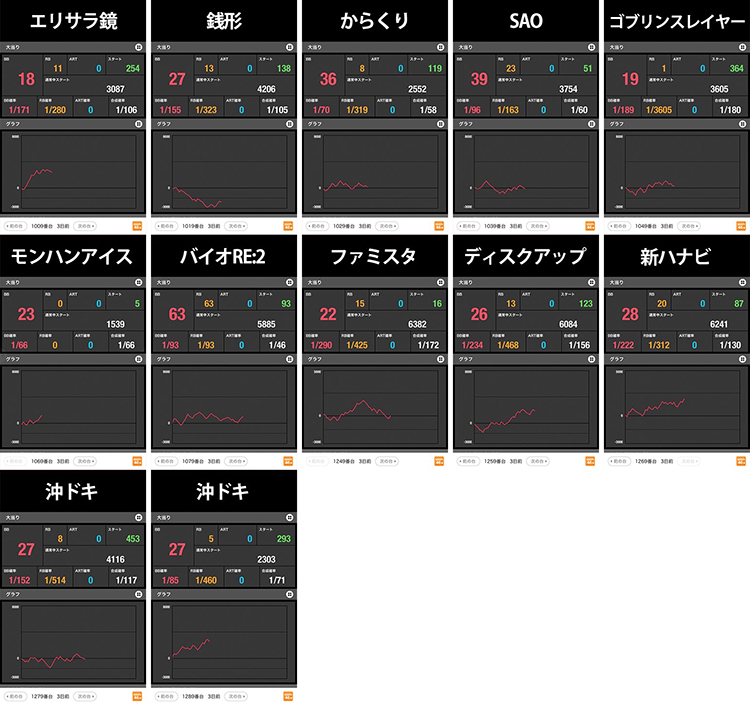 早速末尾8と末尾9のグラフを全台ピックアップ●末尾8全台グラフ