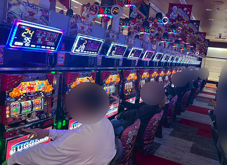 3回目もジャグラーシリーズで勝負!! TOP5の合計pt数が多いホールが勝利です!!