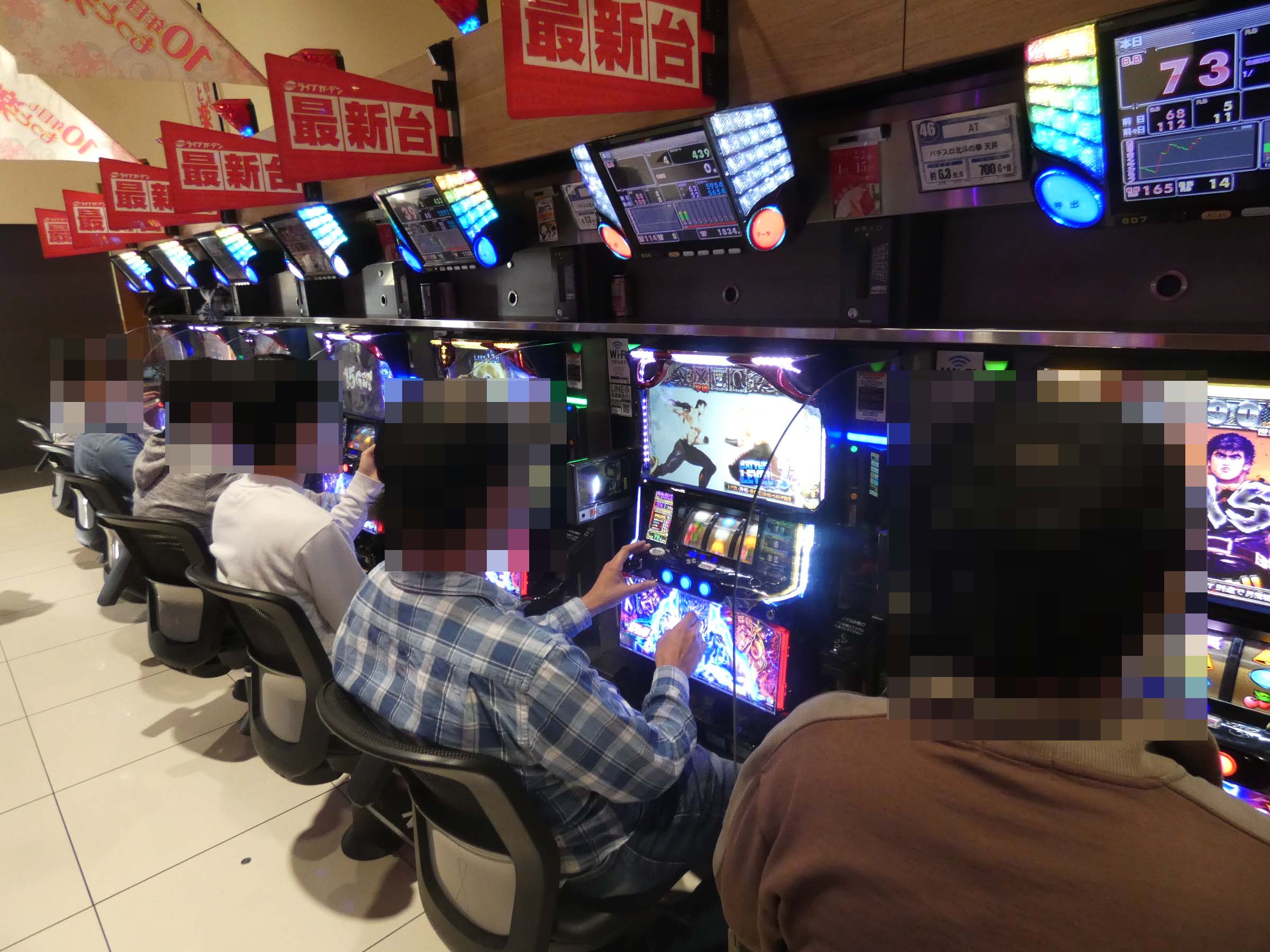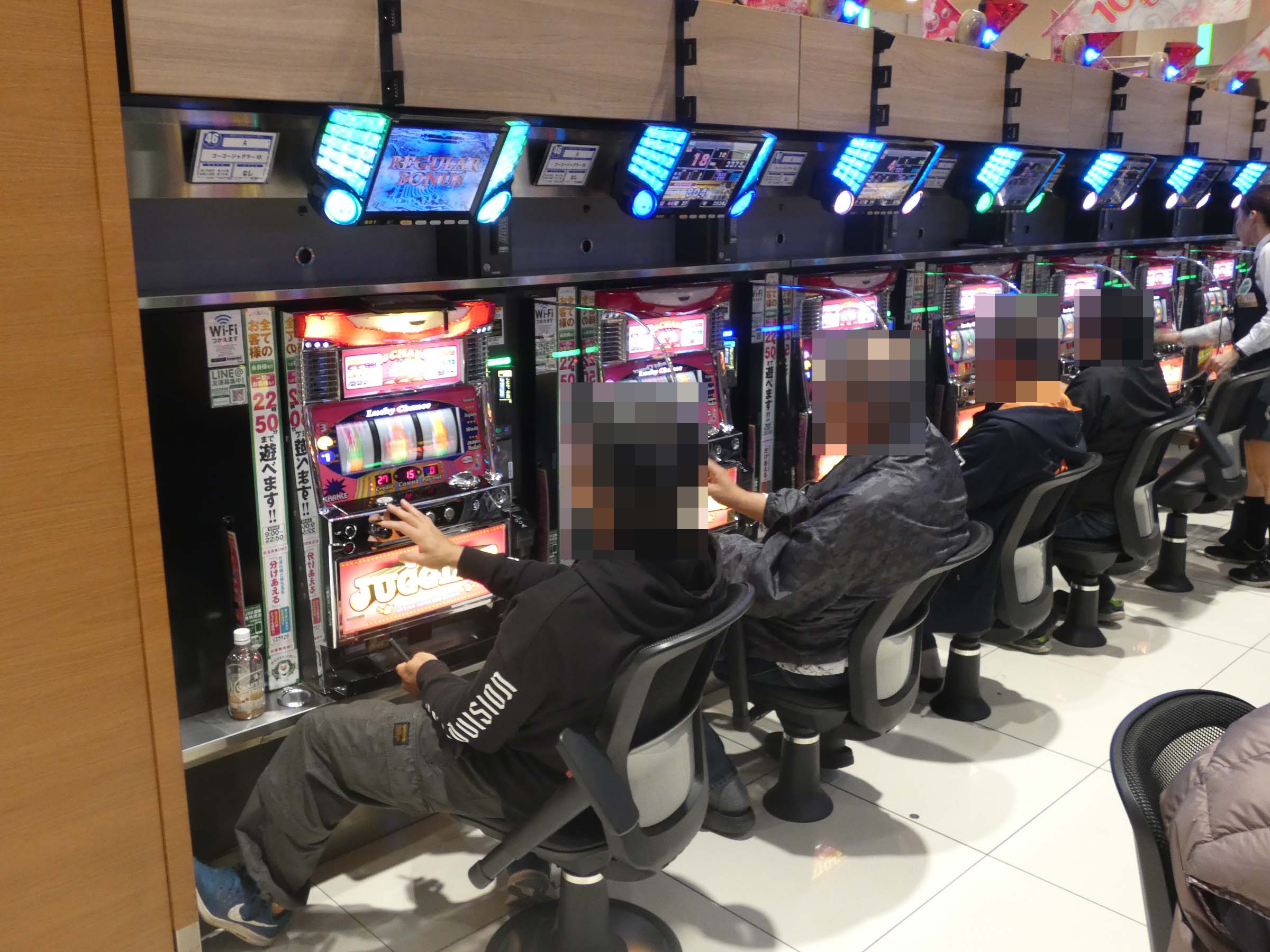 最初に目に入ったのが『北斗の拳 天昇』のシマ。最新台が人気なのはわかるけど、常に高稼動をキープ。お客さんが入れ替わることも少なかったので、もしかしたら良台ばかりだったかも! 『沖ドキ!』や『ジャグラーシリーズ』も空き台が少なく盛り上がっていました。常連さんに聞いたところ「高設定示唆が出た」との貴重な情報も聞けましたよ!WEBアンケート対象期間