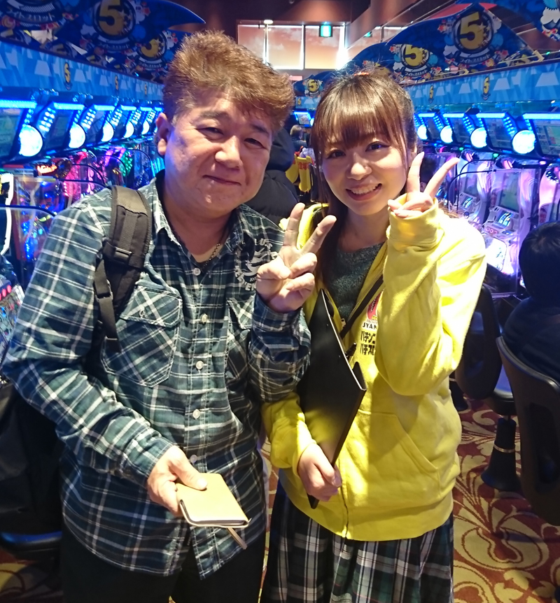 『沖ドキ!』コーナーからは昼すぎの取材の時点で既に別積みしていた台もあり、話しを伺ってみたところ『一撃で5000枚出た〜!』って嬉しそうな方もいらっしゃいました。『バジリスク絆』もかなり人気でほとんど空き台がなかったです。