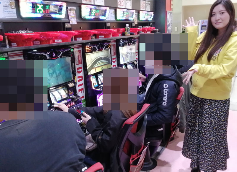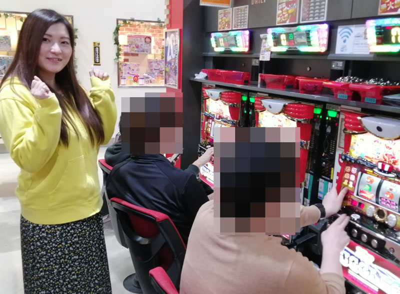 夕方頃、店内に到着しさっそく取材スタート!! まず目に入ってきたのは新編『まどか☆マギカ』。打っている方々にお話を聞いてみると好調台確定情報が続々と!! パッと見ただけで全台好調シマだとわかるほどのpt感でしたからね。座れた方々が羨ましい!! 私もまどか新編の好調台が打ちたいです……。