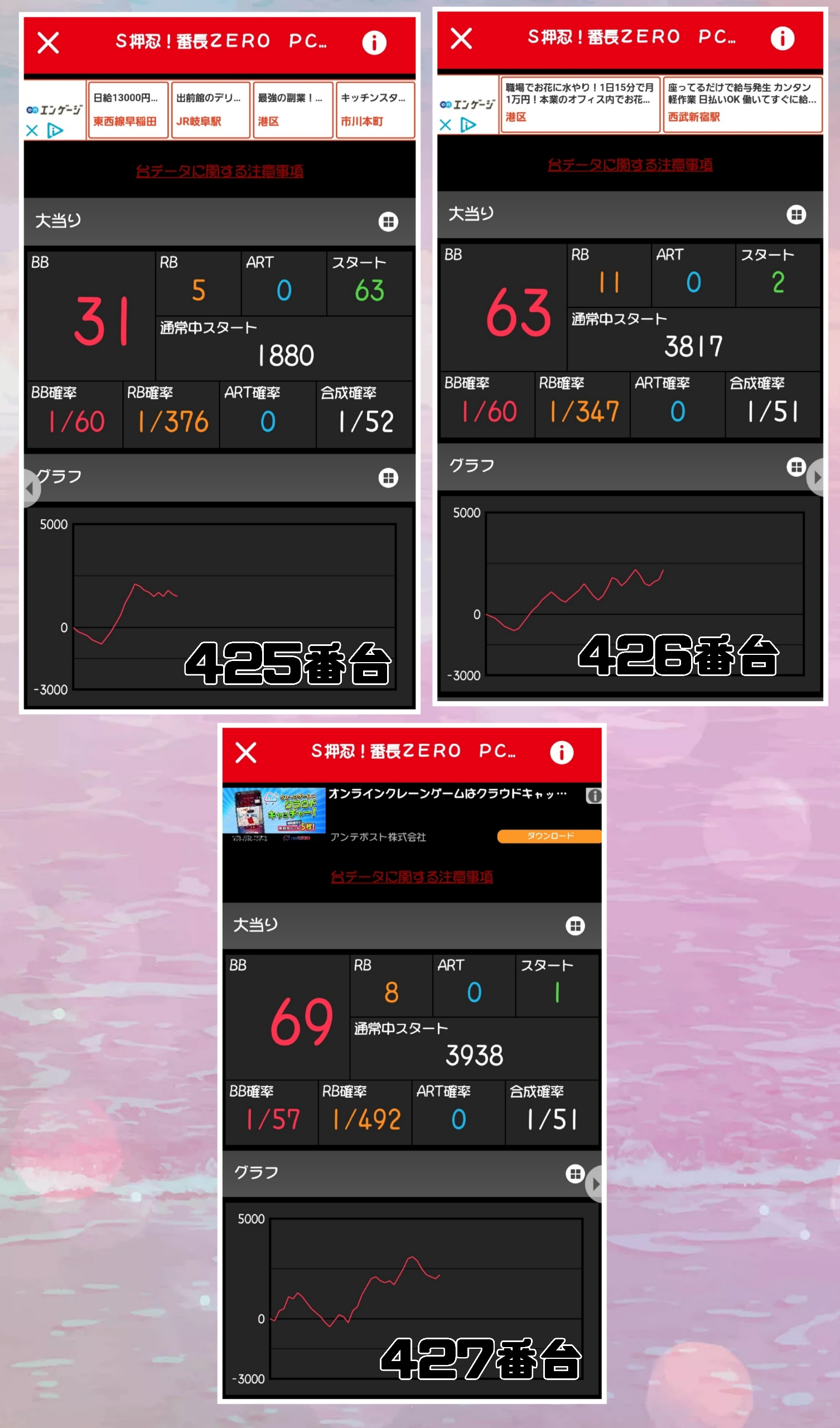 426番台と427番台は直撃もしており粘られている。425番台も途中でヤメられてしまっていますが悪くはなさそうなのでピックアップ☆