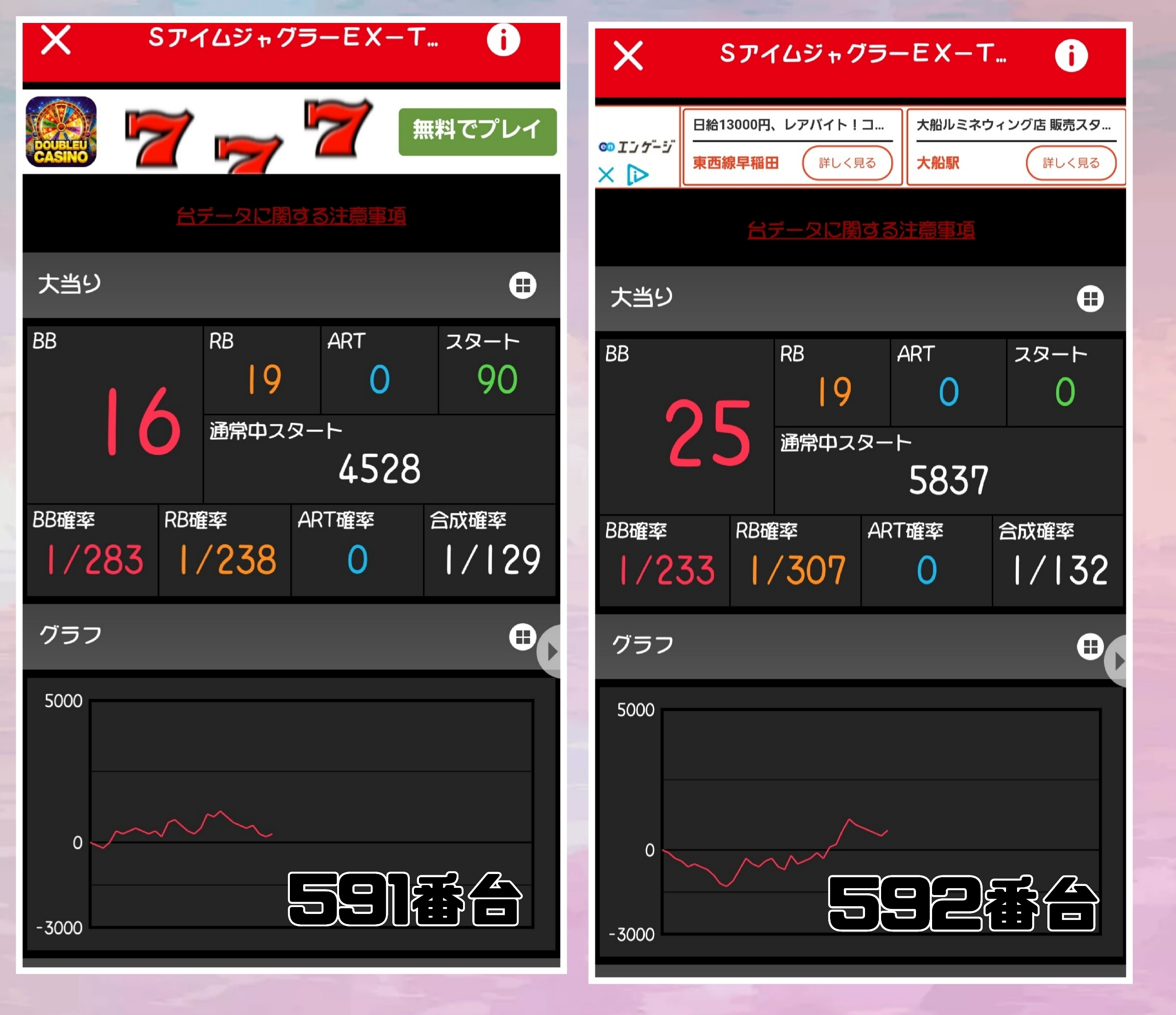 今回データを見て思ったことは、「並び」で高設定が入っているかも?ということ。「番長ZERO」や「ジャグラーコーナー」にそれらしき箇所がありましたからね。特にジャグラーコーナーでは並びと思われる箇所が複数存在!! まだ初回なのでなんとも言えませんが「ガチマル」の時は並び箇所を意識して立ち回るといいかもしれません。もちろん並び以外にも設定が入っていそうな箇所は何個もあったので単ピンも捨てないように!! 次回は今回の法則に注目しつつ、まとめたいと思います☆※数値等はパチマガスロマガスタッフが独自に調査したものです。その他の取材結果