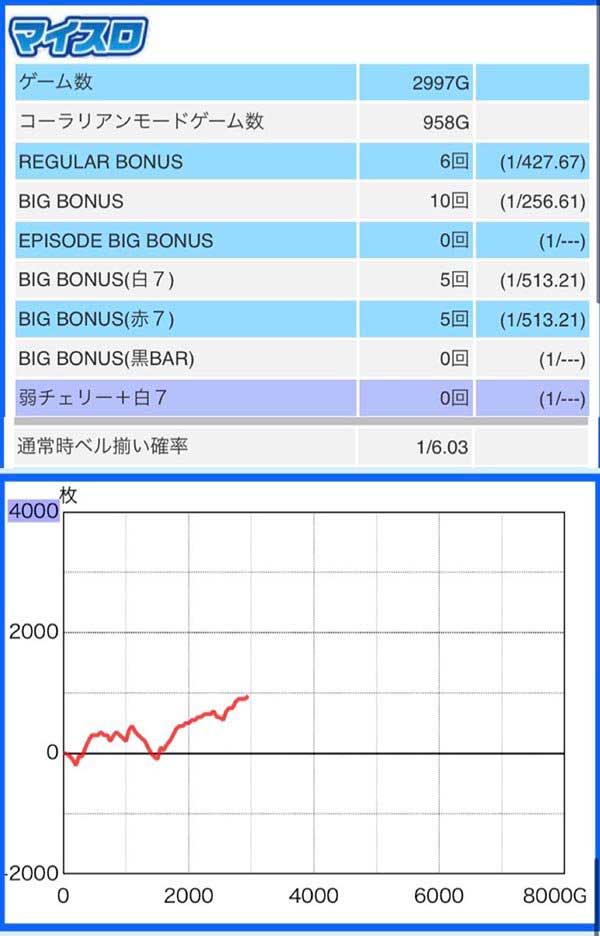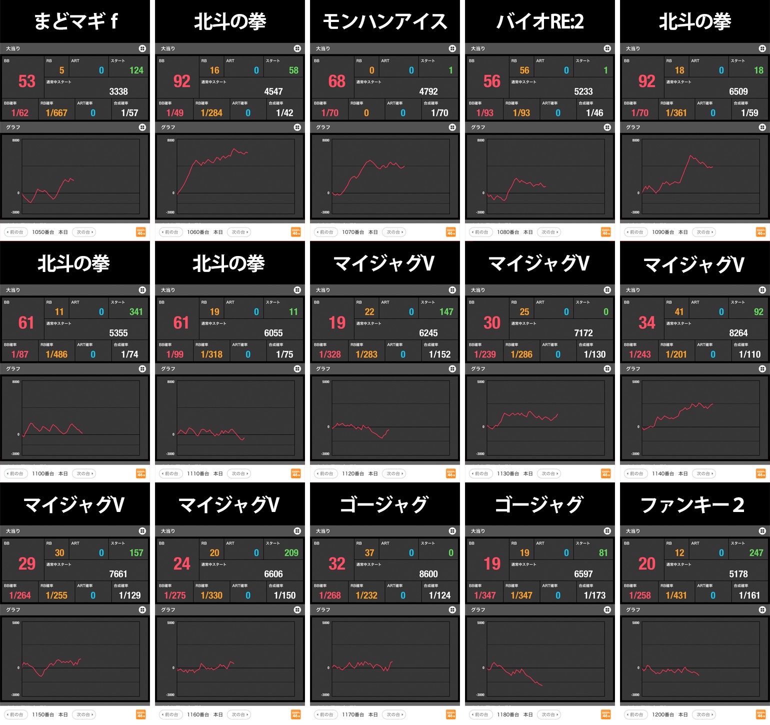 グラフ的にはこのような感じ。非常に安定した右上がりでしたが設定的には正直微妙かなと。何故なら前述したエウレカが全台系でも無かったし、特定末尾にも当てはまっていなかったから。