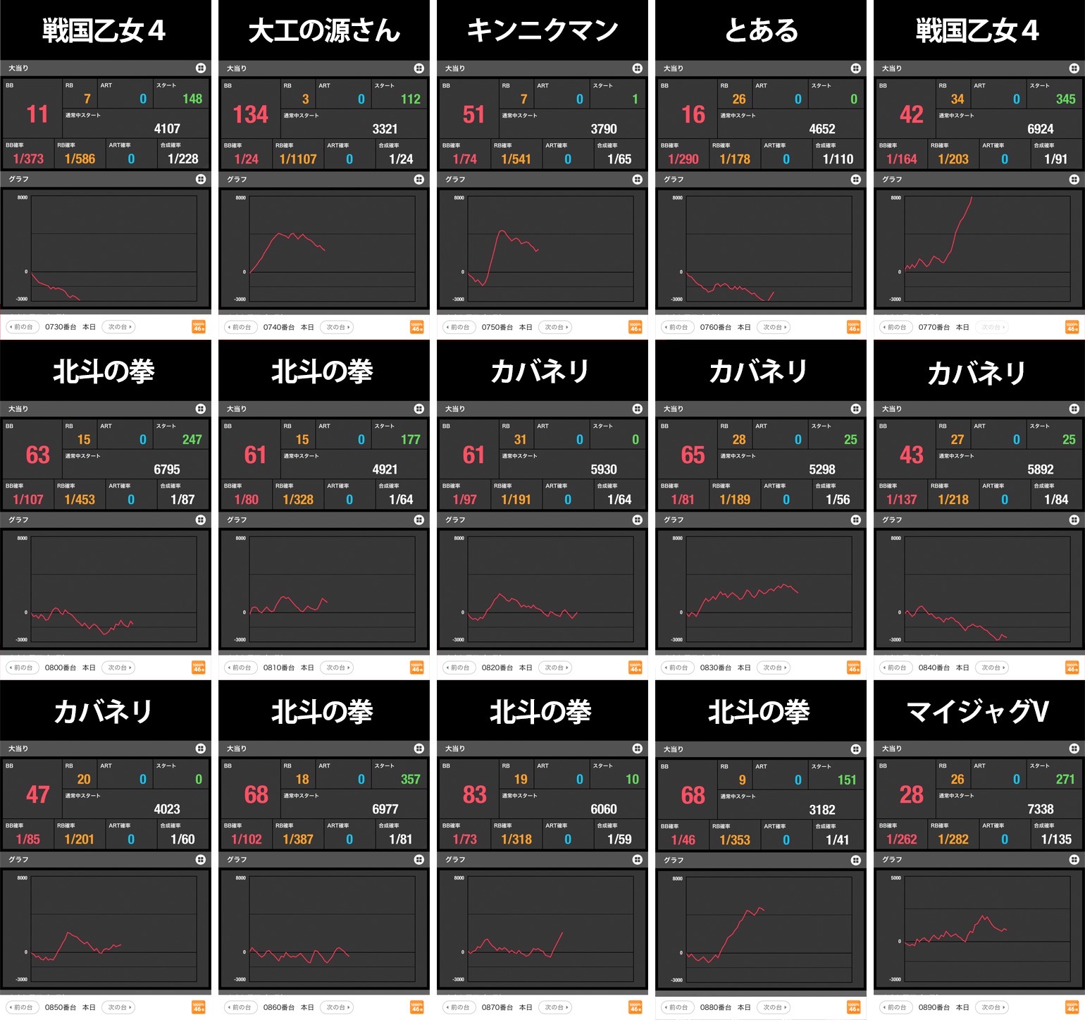 順位 機種名(台番号) pt数 1 L戦国乙女4 戦乱に閃く炯眼の軍師(770) 9,945pt 2 スマスロキン肉マン〜7人の悪魔超人編〜(752) 9,367pt 3 L大工の源さん 超夢源(757) 8,489pt 4 Lパチスロ革命機ヴァルヴレイヴ(910) 8,237pt 5 L009 RE:CYBORG(987) 7,974pt 真神降臨まとめ