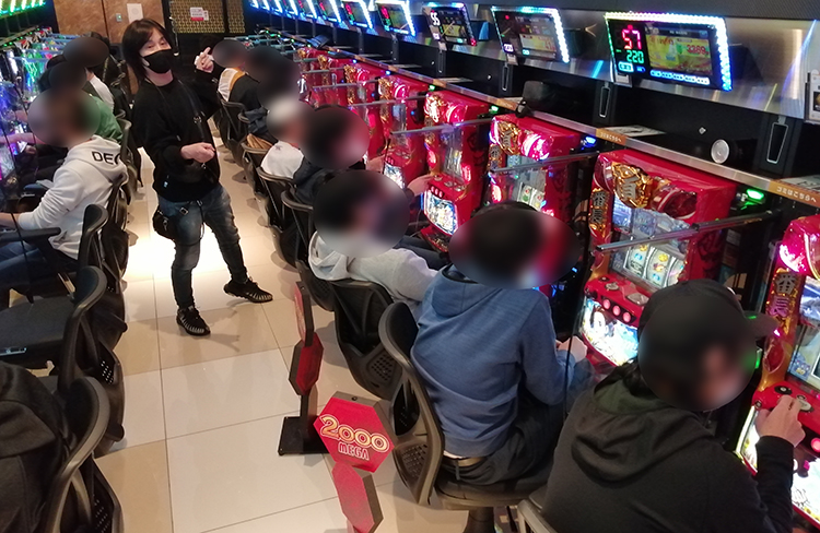 マルハンメガシティ柏店さんの過去の傾向として、高設定比率が高い「特定末尾」&「全台系」が存在しがち。なので設置5台という適度な台数(全台系にしやすい?)と、取材日が11月20日という事もあり1+1+2+0=4で末尾「4」を狙おうとしたのですが、末尾4は押さえられていたので全台系狙いのみの根拠でのキープに。
