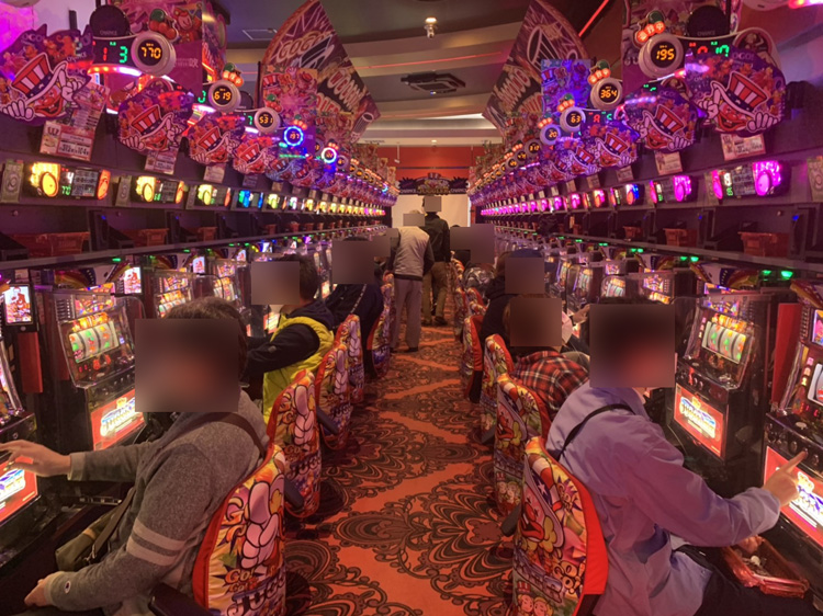 朝イチは4人しかいなかったこちらのシマ。ただ、角台が朝からバリバリの挙動! 絆2の設定6は、はたから見てもATの初当たりがずば抜けて軽いので、昼過ぎにはモロバレ。取材終了時に話を聞くとやはり『設定6確定』したとのこと! その他にも設定456は確定していそうな台が数台あり、特に中央通路側の角付近に固めていたのかなぁという印象。続いて番長3からも、角2の台の当たり方が尋常じゃないということを教えてもらい、閉店後のデータを見ても頂上設定な当たり方をしていました。他にも一撃伸びている台もあったので上2つが複数あったのでは? 前回の取材では、この2機種はお店の赤字だったので、この大事な3月の決算期に大盤振る舞いということは、3月31日まで頑張りそうですね! ちなみに、絆2の設定6確定した台は、前日も設定6だったみたいなので、次お邪魔する際は、その辺も気にして実戦したいと思います。