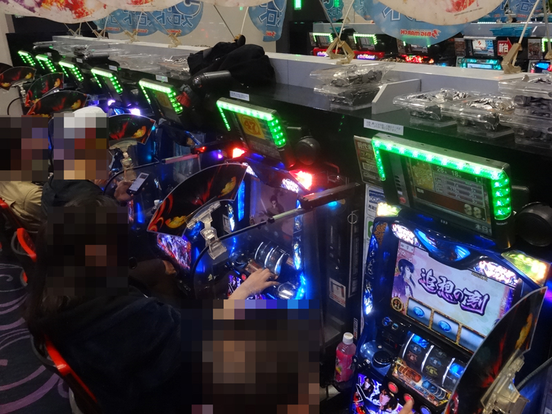 円形のシマと1列のシマで構成されているのですが、データを見ると1列(8台)のシマの方が明らかに強い挙動。昼頃には小役カウンタを持って、終日粘りますよオーラを出している方ばかりでした。今日の固まって盛り上がっているコーナーは、この1列で間違いないでしょうね!