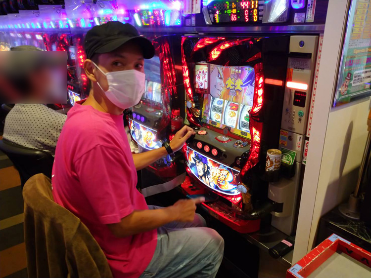 ●『マイジャグラーIII』…僕が行ったとき、『マイジャグラーIII』は空いていました。ただ、これまでの傾向通りだと仮定すると、ジャグラーシリーズの中には強いコーナーが存在するはずなんですよね。で、機種ごとにジャグラーのデータをチェックすると、消去法で導き出されたのが、この『マイジャグラーIII』でした。全部で18台も設置されているので「そんなとこやる?」という気持ちも残りますが、ワンチャンスで。