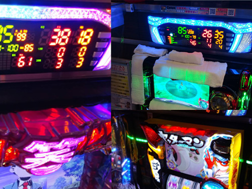 ●『リノ(4台設置)』…端から、出玉なし、3箱、1箱、2箱と出玉感はあるのですが、強そうなコーナーだと感じた一番の理由はそこではありません。なんと、打っている方の大半が小役カウンタを使って粘っていたんですよね。導入当初ならいざ知らず、今の時期に? しかも粘るってことは……。当りっぽいですよね。