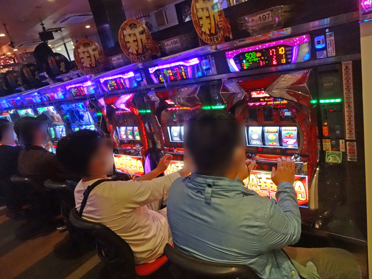 取材開始時の出玉はそこまで目立っていませんでしたが、時間が経過するにつれて全体的に伸び始めたのが印象的。両機種共に過去の取材対象となったことが複数回ありますしね! ただ、見た目からの判断が難しい点だけが不安。でも、スロマガ携帯サイトを使用していた方がいたので信じたい!