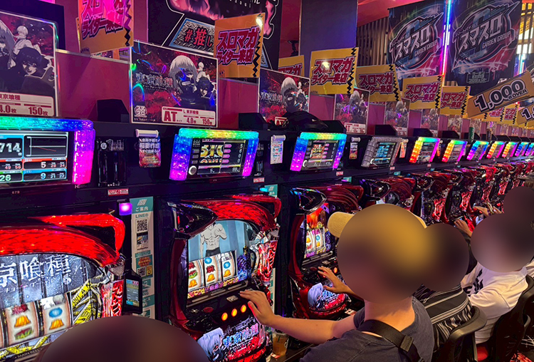 朝から人気の「北斗」「ヴヴヴ」「東京喰種」「ゴッドイーター」を中心に、あちこちに好調台のオーラあり!
