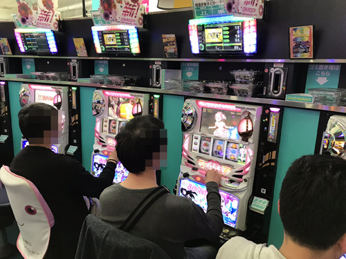ここは当たりシマっぽいなあ、と思いながら、さらに奥へ進むと、今度は『SLOT魔法少女まどか☆マギカ』でも、ここは当たりシマっぽいなあ、と同じことを思う僕。そうなんです、そこには『バジリスク絆』に負けず劣らずの出玉感があったんですよね。