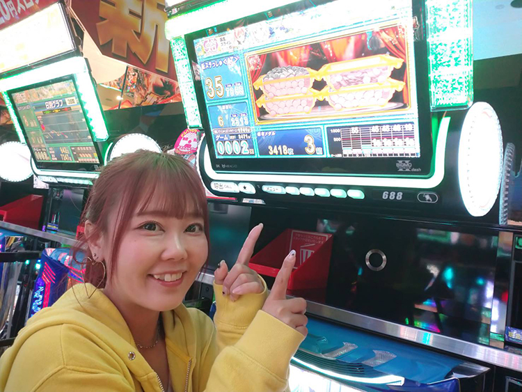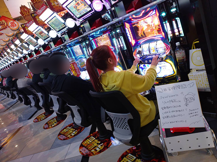 先月に続きパチスロコーナーで実戦取材をさせていただきました。狙いはスマスロコーナー! 前回マイナスで終わってしまった「L主役は銭形4」のリベンジも考えていたのですが、抽選番号がよかったので新台の「スマスロ転生したらスライムだった件」をチョイス。