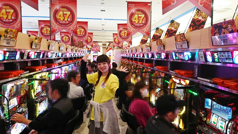 ってことで開店と同時に自分の台を確保〜と店内の取材も開始です!! 朝の狙い台を見ていると大量設置機種はもちろん、少数台やバラエティコーナーにも人がバラけていた印象。やはり初取材と言うことで、皆さん好きな機種への普段以上の期待感があらわれていたのかもしれないですね。