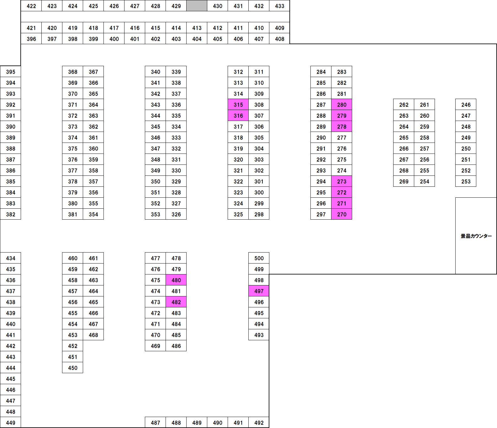 台番号 pt数 ゲーム数 機種名 PAYOUT 270 3,982pt 8,367G Lスマスロ北斗の拳転生の章2 115.9% 271 -1,075pt 4,421G Lスマスロ北斗の拳転生の章2 91.9% 272 2,850pt 7,401G Lスマスロ北斗の拳転生の章2 112.8% 273 7,371pt 6,666G Lスマスロ北斗の拳転生の章2 136.9% 278 6,278pt 9,247G Lスマスロ化物語 122.6% 279 -552pt 4,761G Lスマスロ化物語 96.1% 280 104pt 4,074G Lスマスロ化物語 100.9% 315 2,963pt 6,609G Lスマスロ攻殻機動隊 114.9% 316 3,060pt 6,010G Lスマスロ攻殻機動隊 117.0% 480 749pt 6,864G マイジャグラーV 103.6% 482 -724pt 1,363G マイジャグラーV 82.3% 497 59pt 2,511G マイジャグラーV 100.8% ポイントTOP5