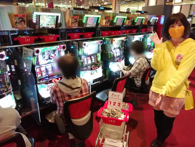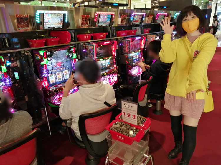 取材中は『SLOT劇場版魔法少女まどか☆マギカ[新編]叛逆の物語』に座った方からAT直撃の報告をいただきました。まとまった出玉を獲得していたのは『ヱヴァンゲリヲン 勝利への願い』や『パチスロBLOOD+ 二人の女王』あたり。バラエティのシマも、毎回なにかしら出ている印象があります。完走している台もチラホラあり、見ていて羨ましかったです……(笑)。