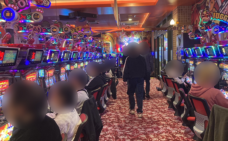 ジャグラーコーナーに5台並びでブン回し台が出現!! 終日回し続ける姿は熱狂的でしたね!