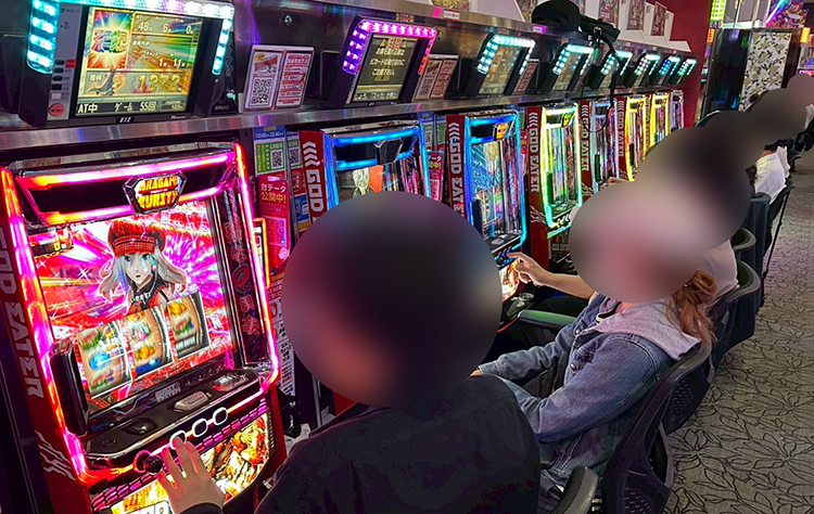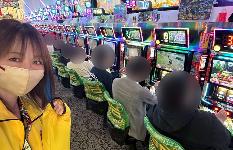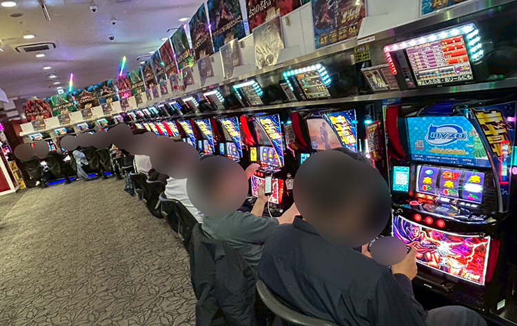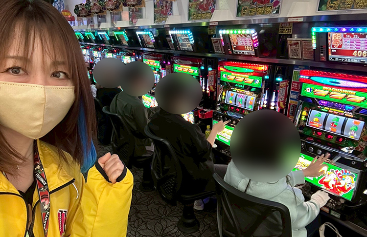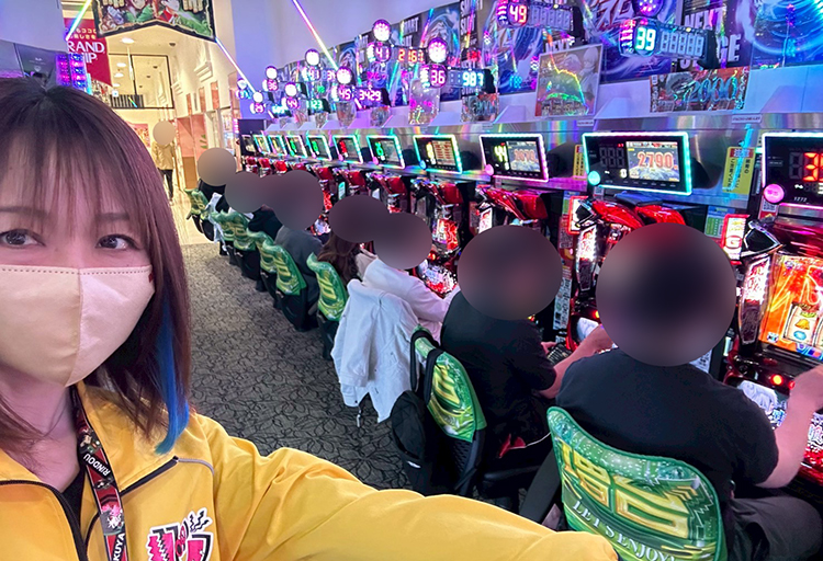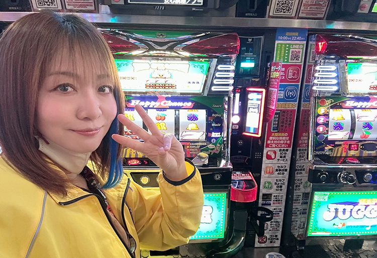 入場するとやはりメインどころは空きなし! 迷った私はハッピージャグラーが1台だけ空いているのを発見、しかも朝の整列時にお話ししていた方の隣だったので、すかさず着席。
