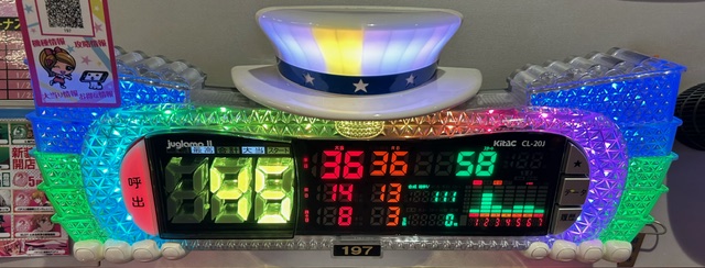 SマイジャグラーVジャグラーコーナーのみ 順位 機種名(台番号) pt数 1 SマイジャグラーV(195) 5,088pt 2 SマイジャグラーV(197) 3,242pt 3 SマイジャグラーV(196) 2,867pt 4 Sゴーゴージャグラー3(214) 2,716pt 5 SマイジャグラーV(201) 2,465pt ※数値はじゃんじゃん編集部が独自に調査したものです。その他の取材結果