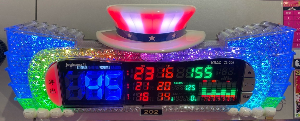 朝は予想通りマイジャグラーシリーズから埋まる展開。結果を見てもマイジャグラーシリーズはかなりアツいですね。ただ、他のジャグラーにも好調台があったので、ジャグラーそのものがアツいということも言えますね。