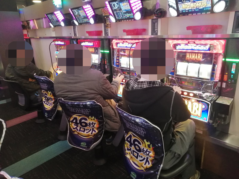 取材開始の時点では、『ハナハナ鳳凰』と『沖ドキ!』の人気が目立ちました。また、アンケート対象機種では『SLOT劇場版まどか[新編]』や『マイジャグラーV』に大量ポイントの台を発見! その他にも、ハナビやバーサスでは高設定らしき履歴の台があり、全体的に盛り上がっていました!!WEBアンケート対象期間