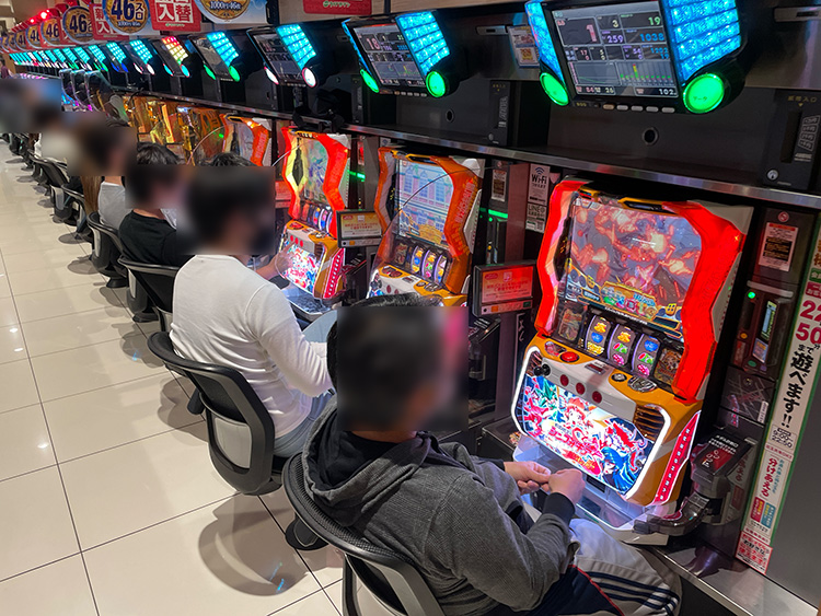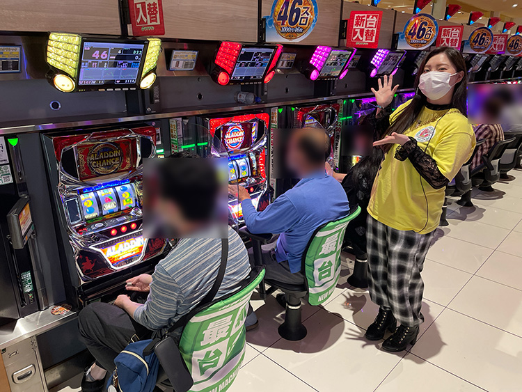 朝イチの店内は複数設置機種が大人気!! 理由としては今回を除いて2回、聖母降臨-共闘-でお邪魔しており、その時にも複数設置機種から「全台系」が複数箇所見つかったからではないかと思います。後はいつも良さそうな末尾もあり。ちなみに確保は出来ませんでしたが、狙っていたアラジンAは末尾狙いも兼ねていました。今回はどこから確定が飛び出すのか、ドラ美さんと2人でお邪魔しているので店内にいつもと違う変化があるのか!? その辺にも注目しつつ取材していきます☆