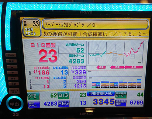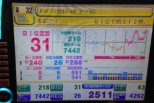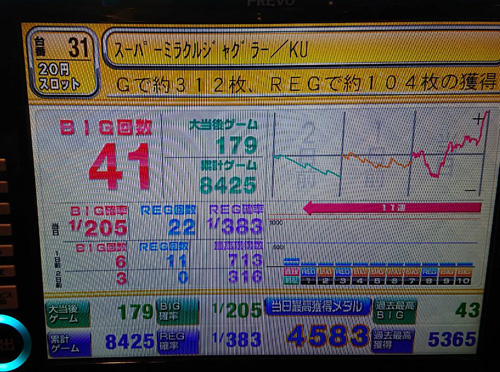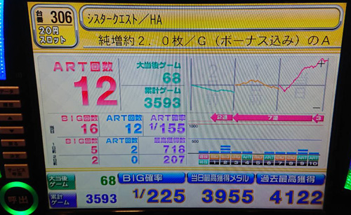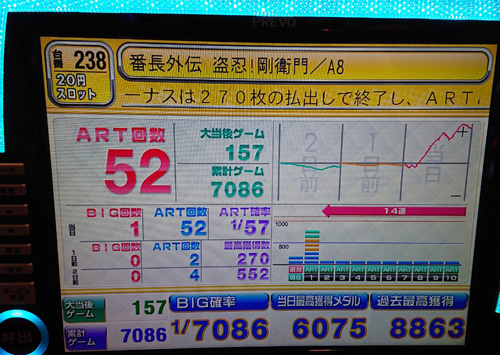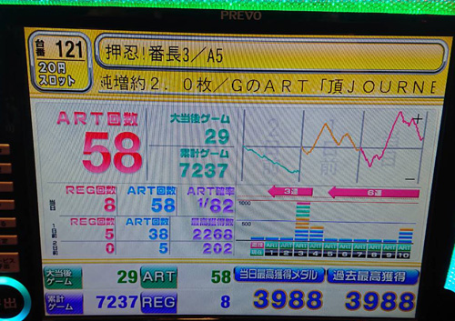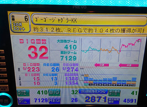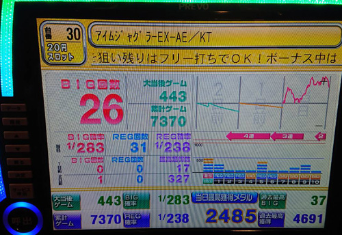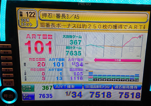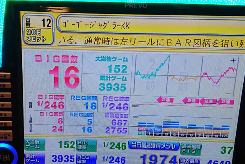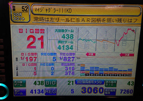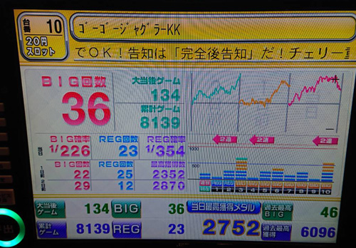 好履歴台が固まっていましたね。比較的素直に反応するジャグラーシリーズとあって、しっかり投入はされているかと。押忍!番長3