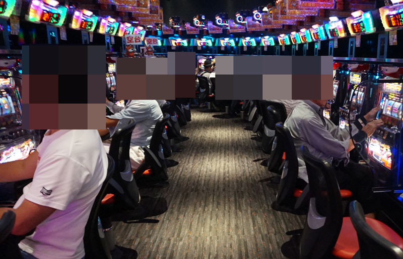 取材をはじめて真っ先に目に飛び込んできたのが全50台オーバーの設置を誇る『ジャグラー』コーナー。多台数ながら稼働も高く、『マイジャグV』では2000ptオーバーの台も確認。最終的に『マイジャグV』のシマでは、半数以上の台がプラス域で終了と好状況でした。その他『ファンキー』も好調で、こちらはランキングに2機種もランクイン! 2000ptオーバー台が複数と『マイジャグV』に負けず劣らずの状況となっていました。