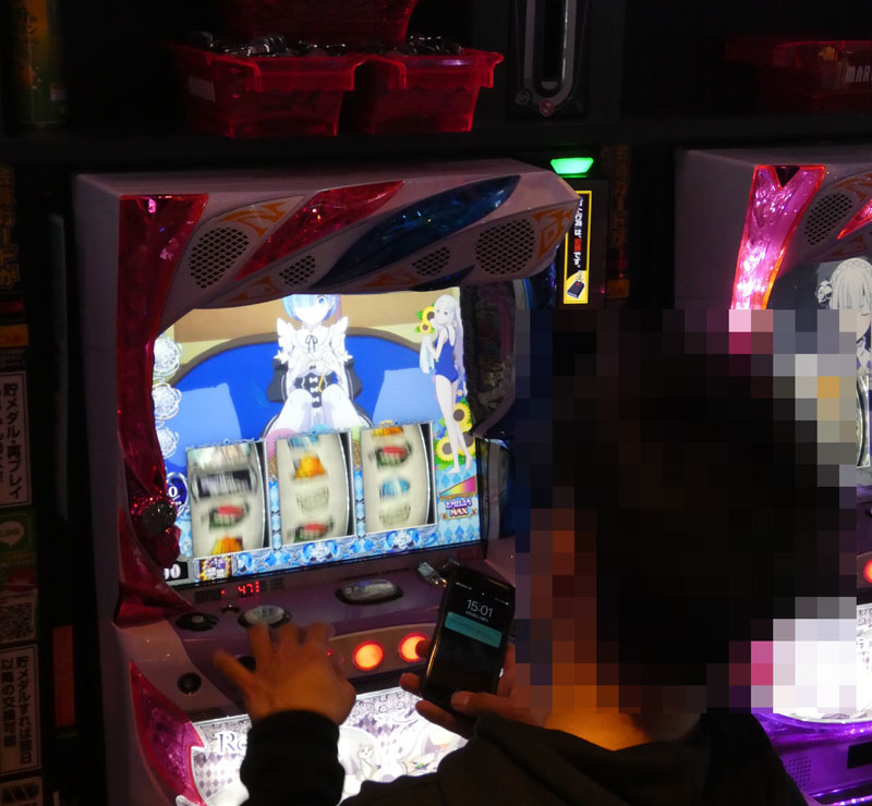 最初に目に飛び込んできたのは『Re:ゼロ』。全台稼働中とはいえないものの、稼働している台は軒並み箱を使用している状況。さらに中には4000ptオーバーの台も確認でき、明らかな好状況でした。次に気になったのが『絆』と『まどマギ』といった旧基準機。前者はほぼ満席の高稼働で、約5000ptクラスの別積みも確認。他台も1500ptオーバーが複数存在していました。後者は4台中2台が別積み、小役カウンタを使用しているファンの方も存在と明らかな好状況!!